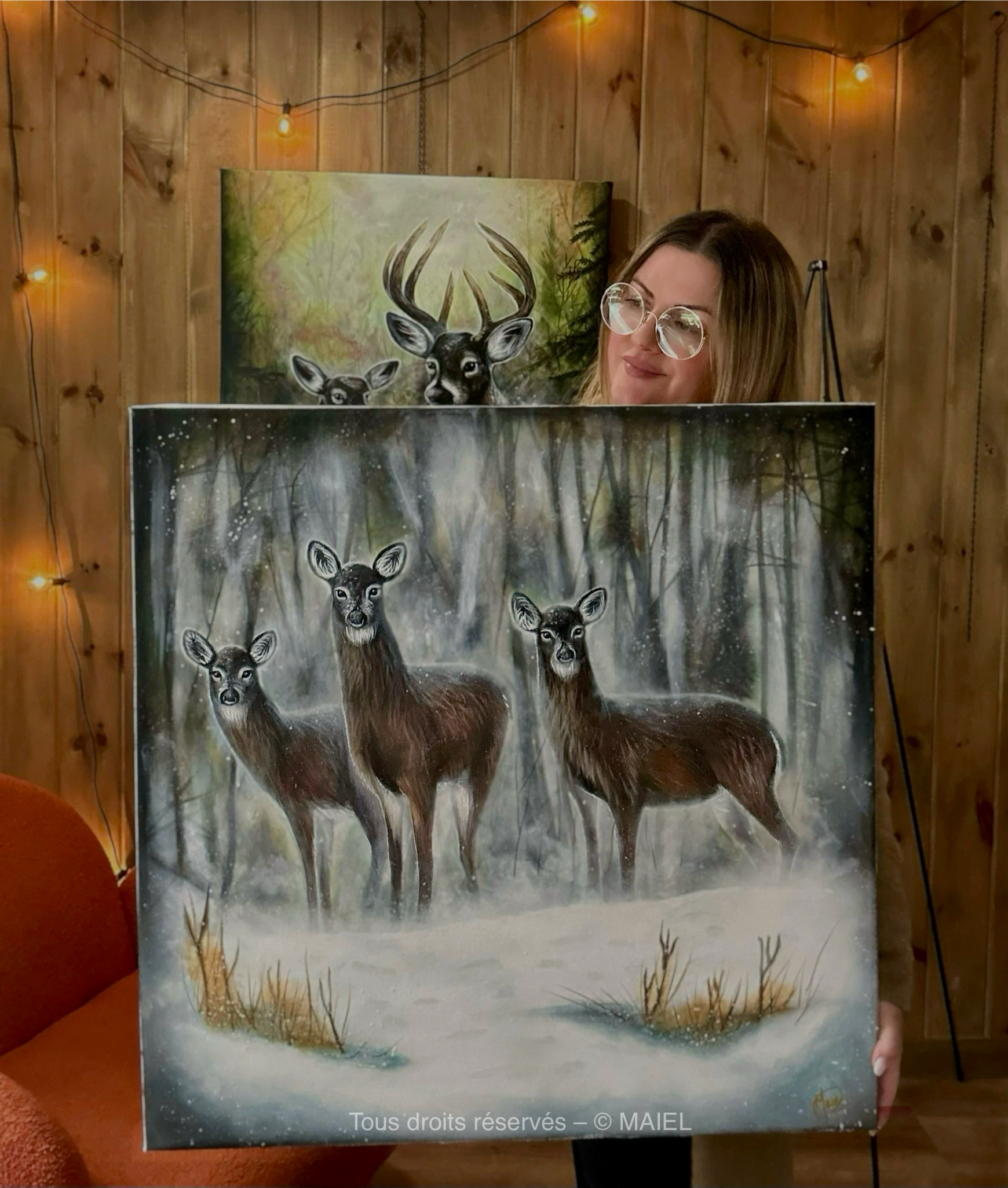 Un instant magique capturé par le photographe animalier Jonathan, chez mon amie Éric Labelle, qui a nourri mon inspiration pour donner vie à ce tableau dans mon style. Merci infiniment pour ce moment partagé, pour votre passion pour les animaux et pour votre regard unique, qui résonne avec le mien.